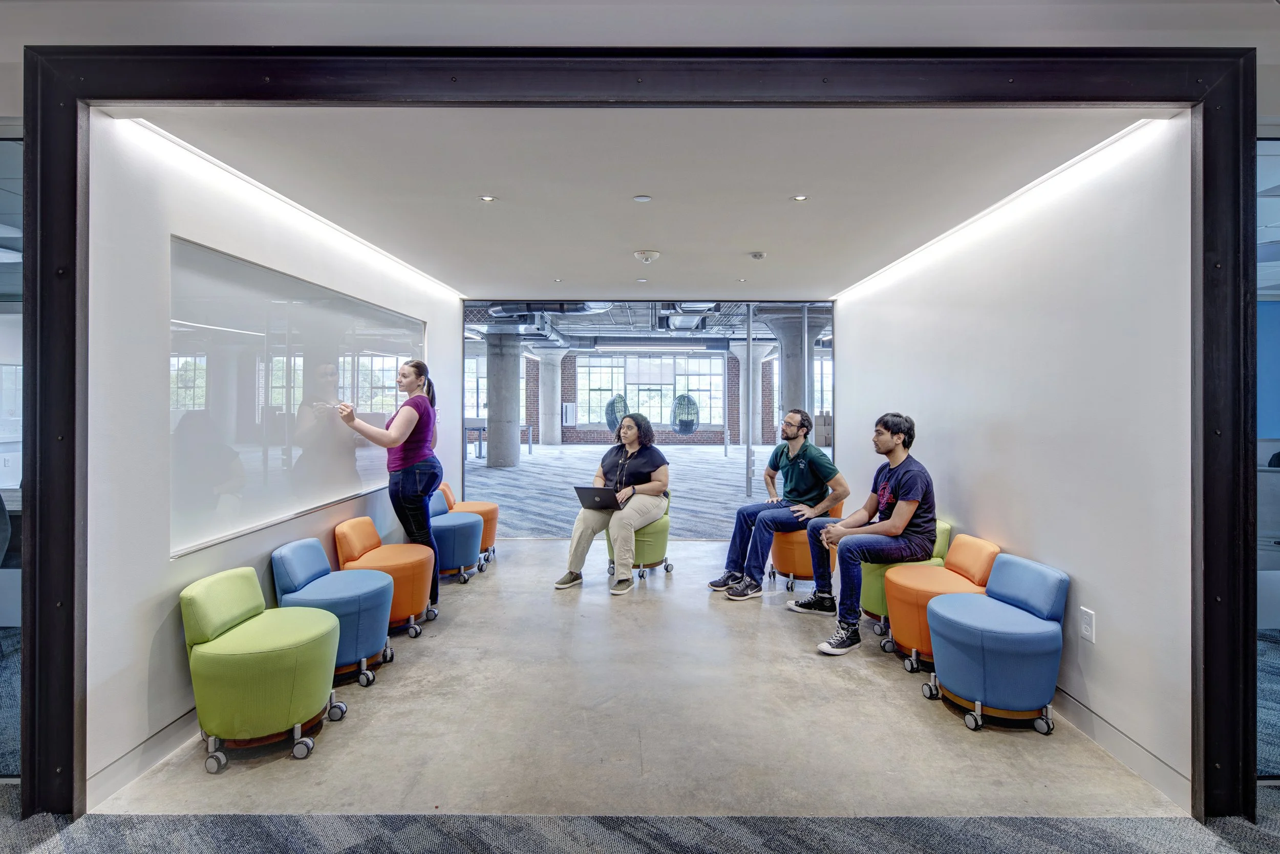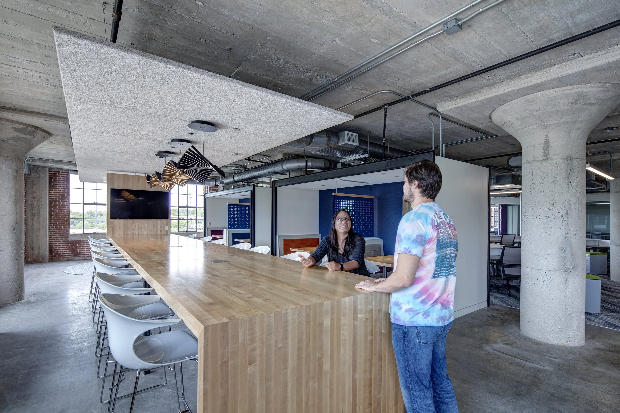 This bright and daylit workplace for software developers, their real-world interface and corporate operations is highly collaborative and flexible while retaining professional clarity. Cardlytics has thrived in its new offices, and is attracting world-level professionals from several disciplines.
